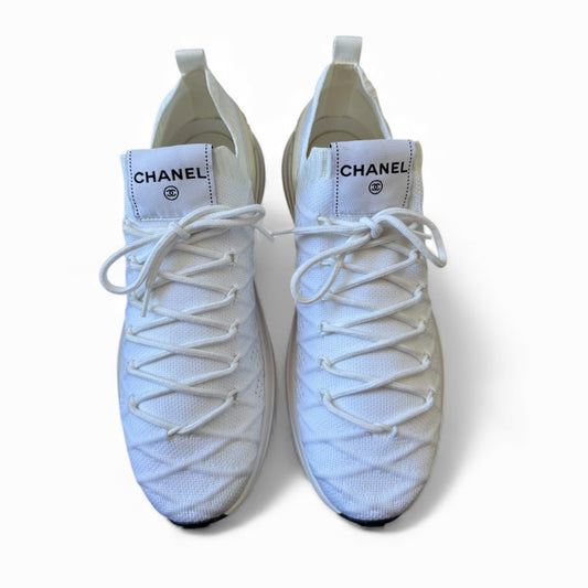Chanel White Knit CC Trainer