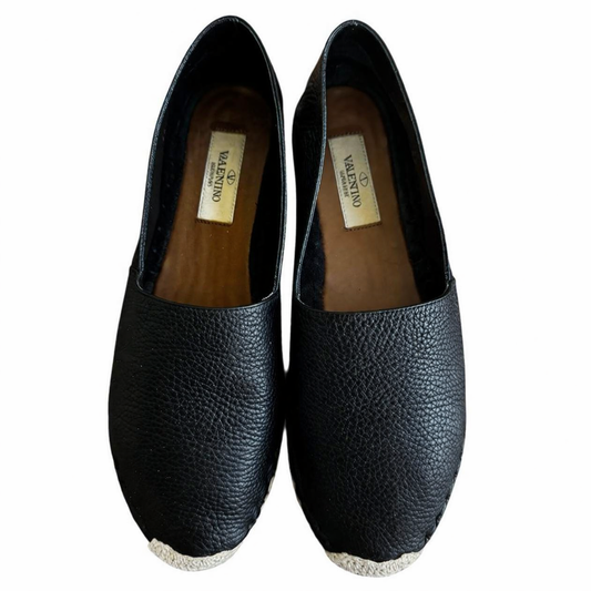 Valentino Black Leather Espadrilles